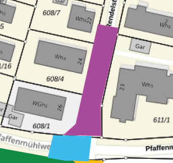 Die Stadtwerke erweitern ihr Fernwärmenetz im Bereich der Rendelstraße und beginnen am 04.05.2026 mit dem dritten Bauabschnitt , der in der nachfolgenden Abbildung lila eingefärbt ist. Der Abschnitt wird für die Dauer der Arbeiten für den Durchgangsverkehr voll gesperrt.